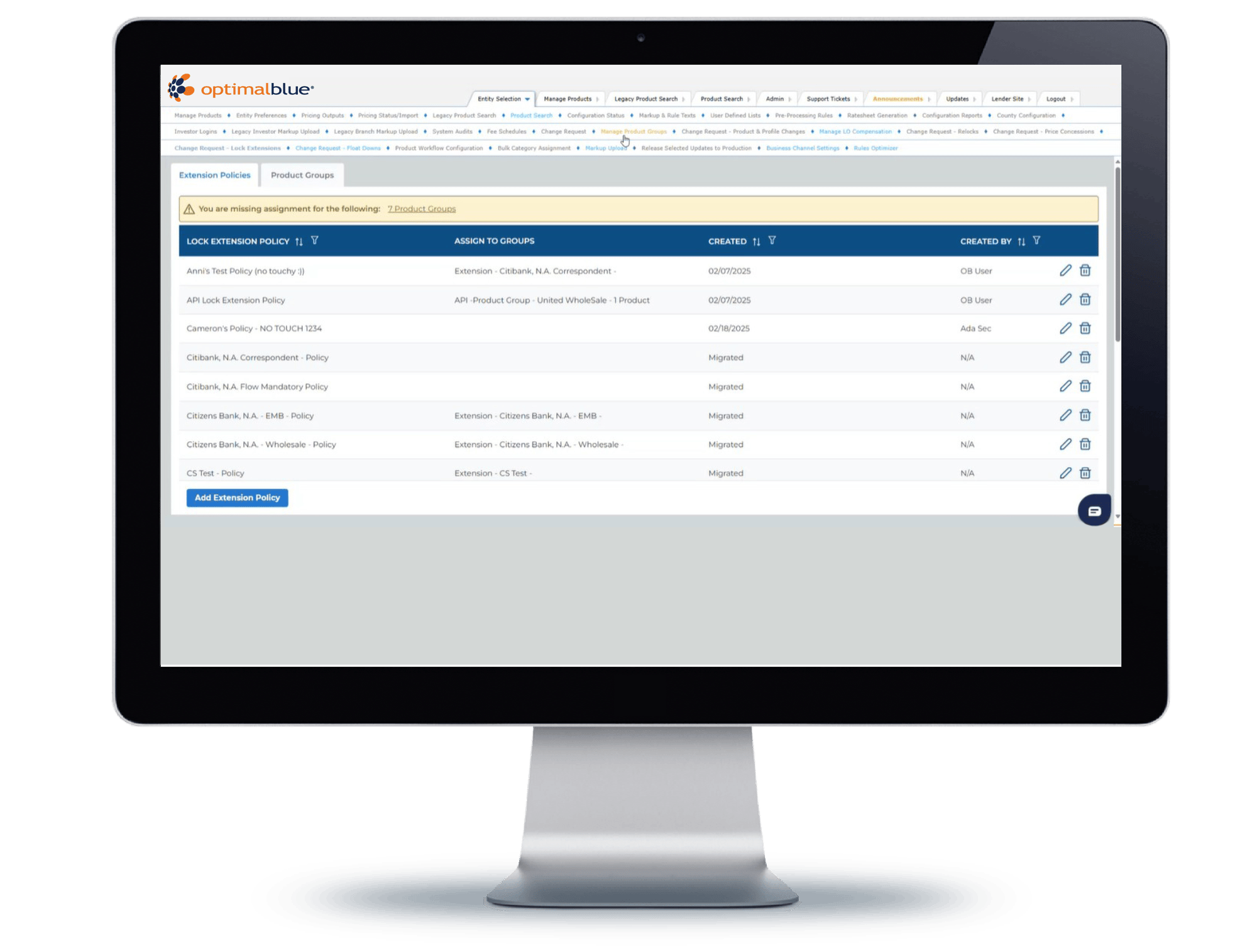 - Increase Automation and Reduce Manual Work: Minimizes redundant tasks by allowing configurations to be set across multiple investors using global product groups (launched earlier in 2025). Speed up lock extensions with new controls to eliminate manual reconciling and clear outs.